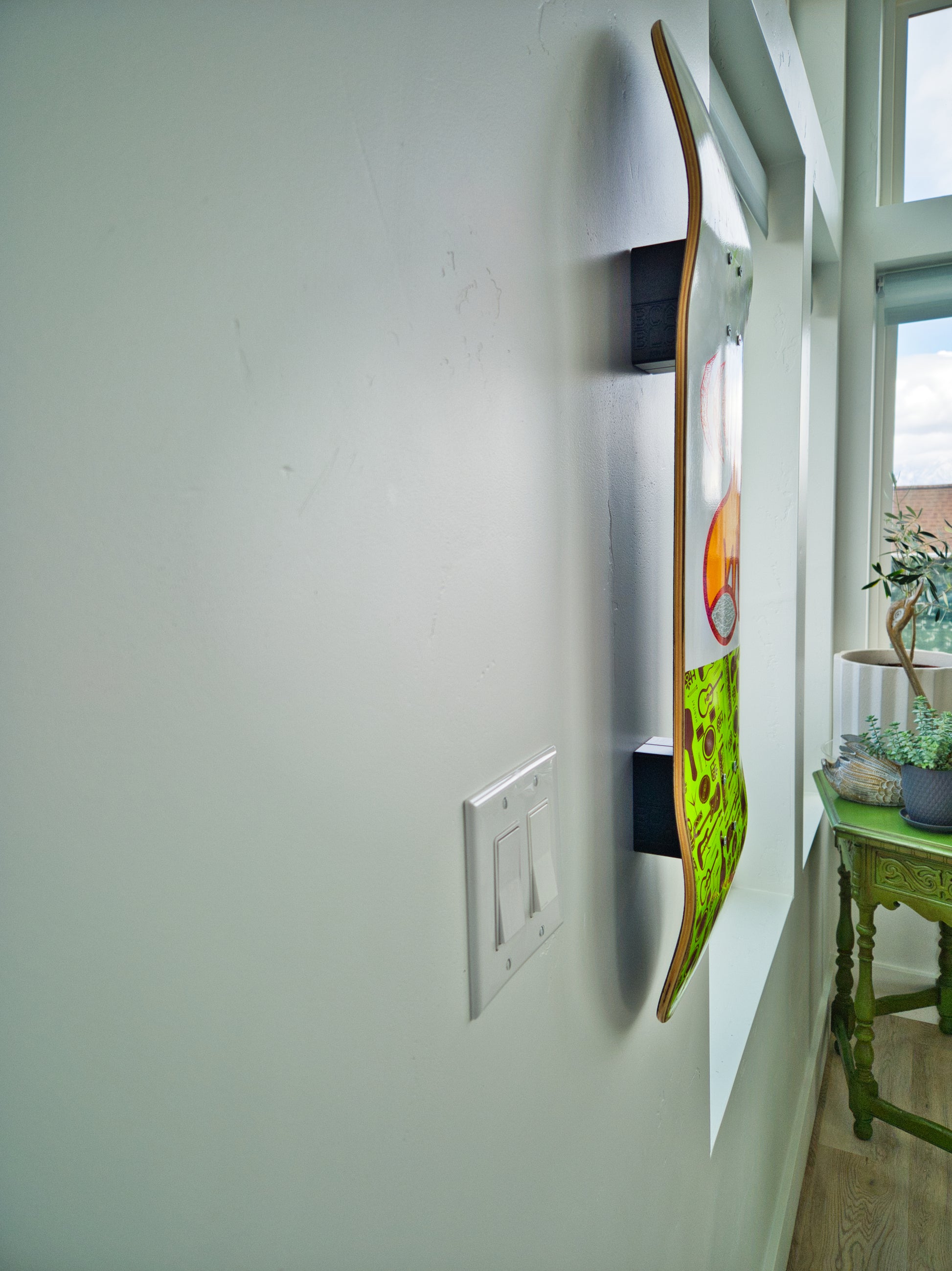 Your deck floats roughly ½ inch off the wall, creating a subtle shadow line that gives it a true gallery look — like it belongs there.